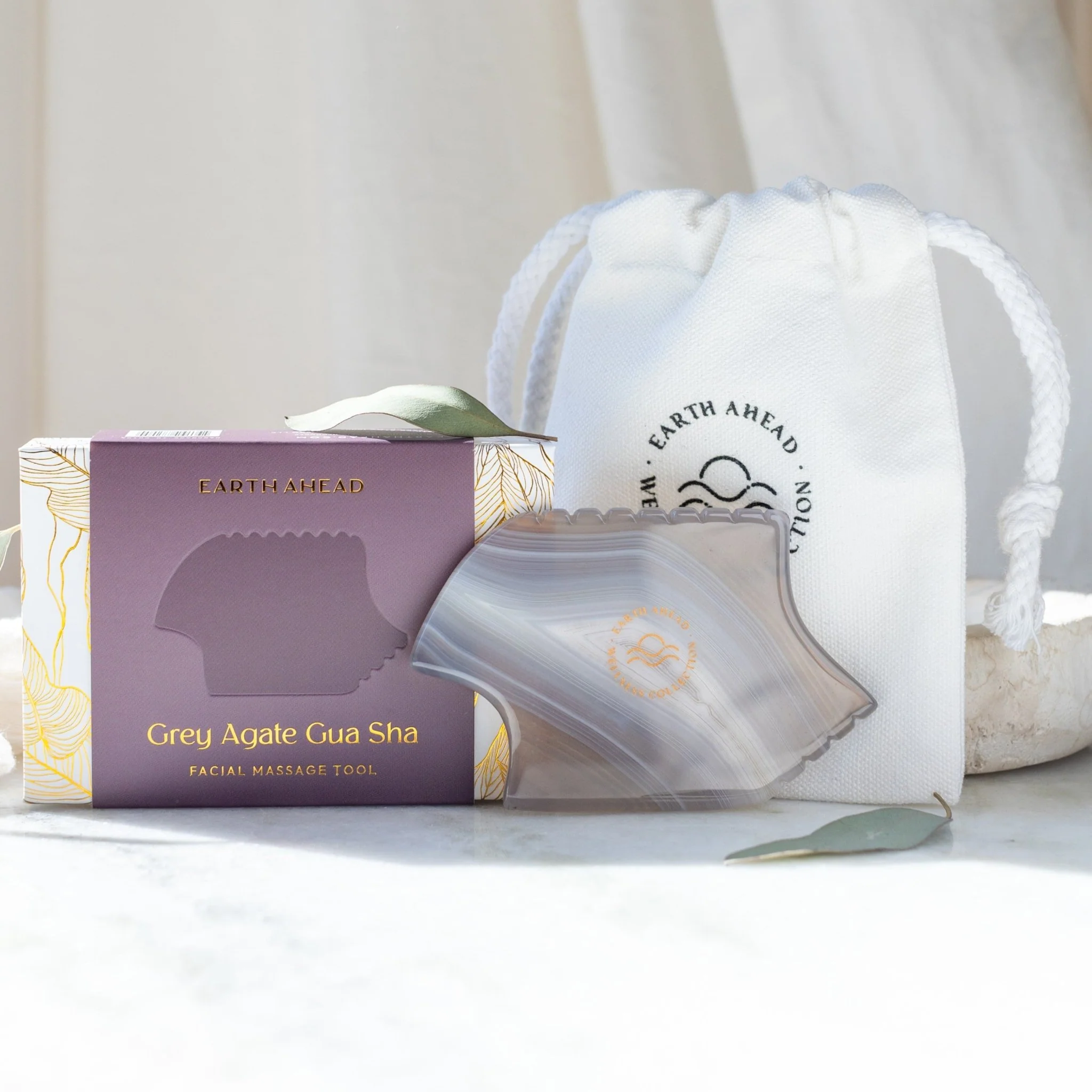 Pele Grey Agate Gua Sha Facial Massage Tool from Earth Ahead harnesses grounding grey-agate stone to sculpt, de-puff and elevate your facial self-care ritual with beauty and calm.
